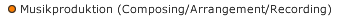 Musikproduktion (Composing/Arrangement/Recording)Wir produzieren u.a. für Filme, Werbetrailer, Videopräsentationen aber auch für andere Künstler Musik nach Maß. Ob als Auftragskomposition oder Library-Music. Auf unserer Seite Downlads stehen Ihnen demnächst Hörbeispiele verschiedenster Art zur Verfügung oder fordern Sie einfach per Mail unsere Demo-CD an. |
